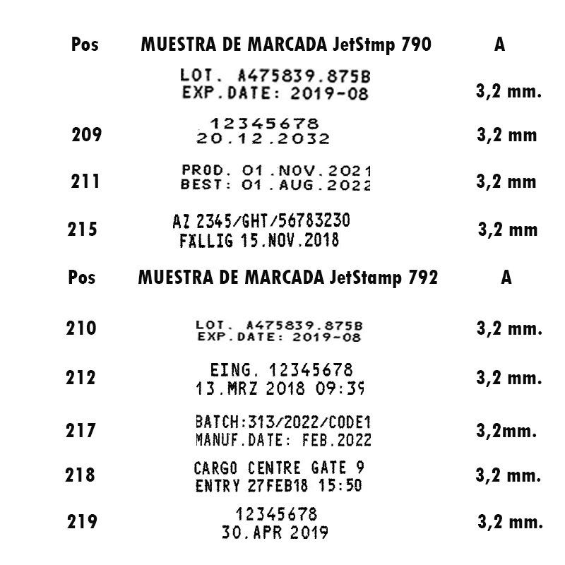 Muestras de marcada JetStamp 790 MP y JetStamp 792 MP